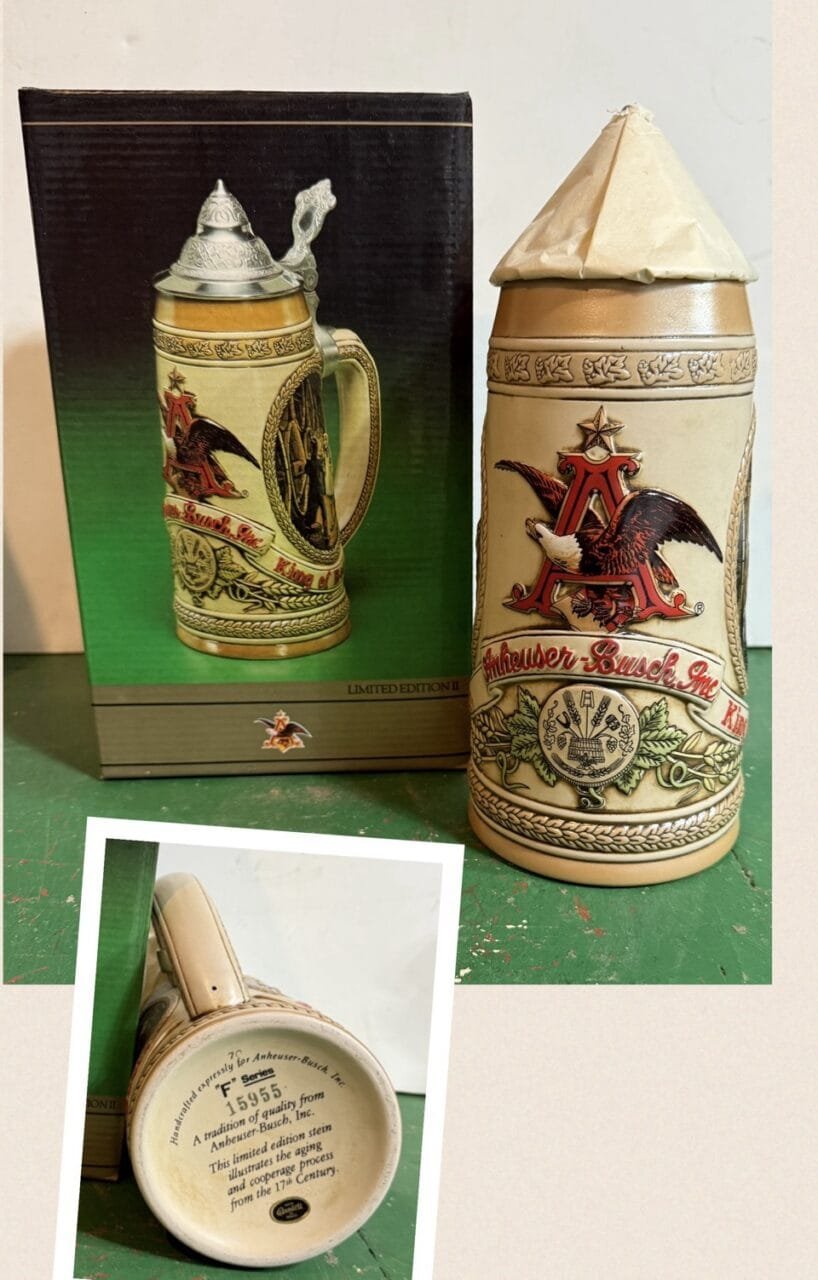 1986 Budweiser Aging & Cooperage Lidded Stein